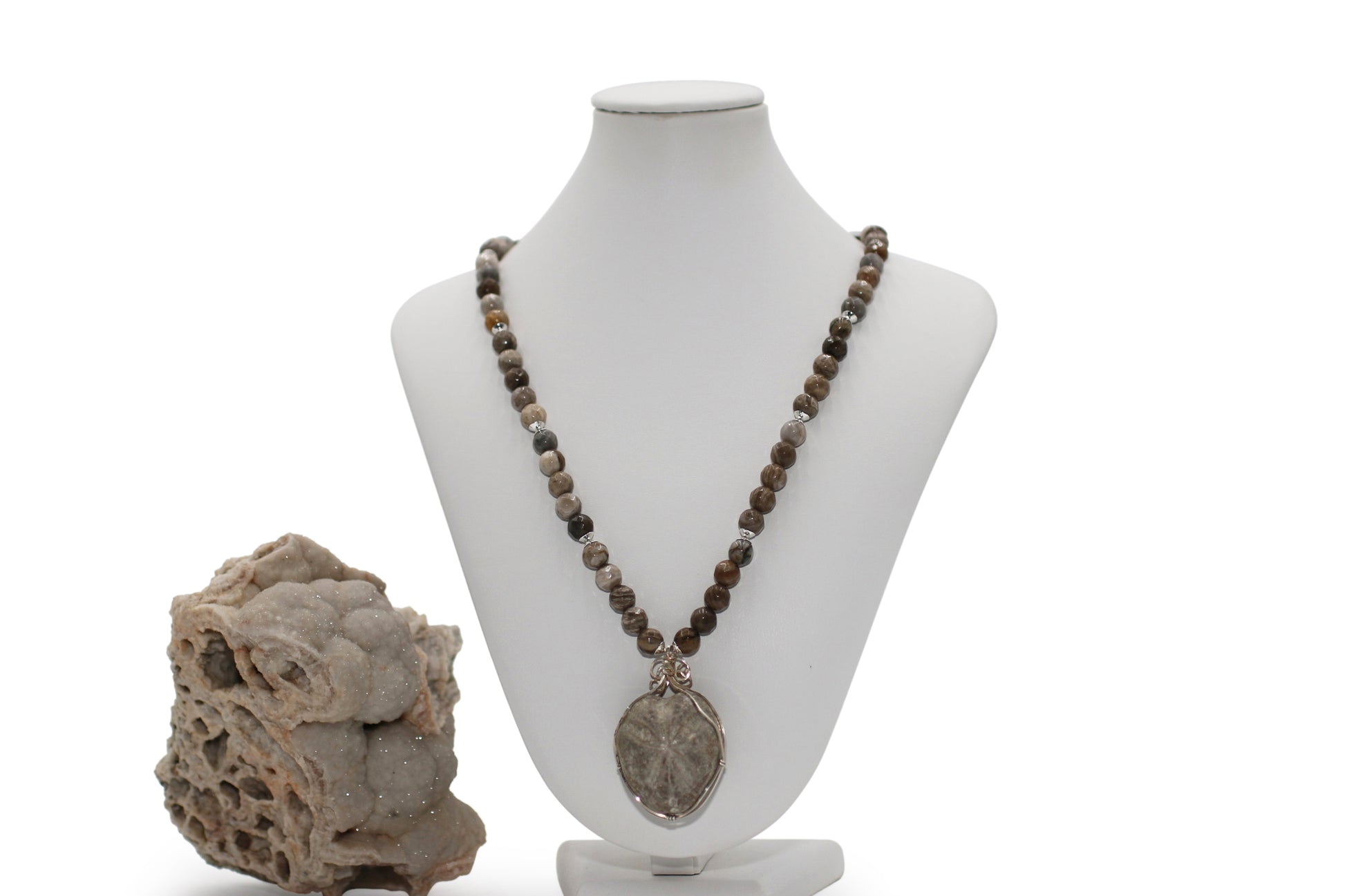 With this stunning 26" necklace, you can capture the essence of the sea in a uniquely beautiful way. Handcrafted with genuine Silver Leaf Jasper natural gems and Sterling Silver components, this necklace is truly one-of-a-kind. Plus, with a wire wrap treatment that's simply a wrap-star, you'll add a touch of uniqueness to any outfit.