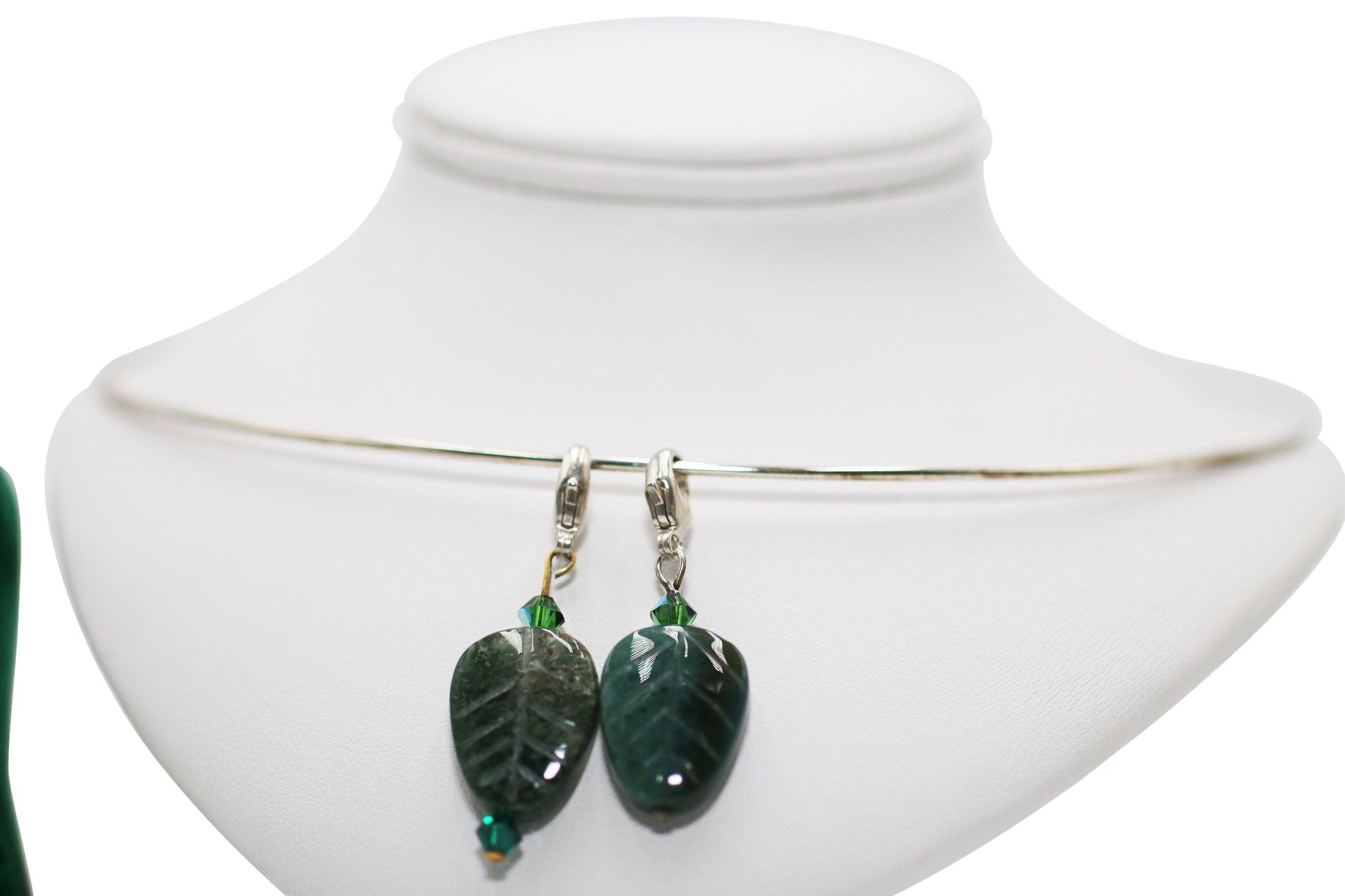 Discover the serene elegance of this handcrafted pendant showcasing a genuine moss agate leaf bead in soothing green hues, gracefully suspended from a polished silver-plated neckwire. Each stone carries its own unique patterns, making your piece truly individual. This necklace invites you to connect with nature's calming energy while adding a touch of refined, understated style to your everyday look.