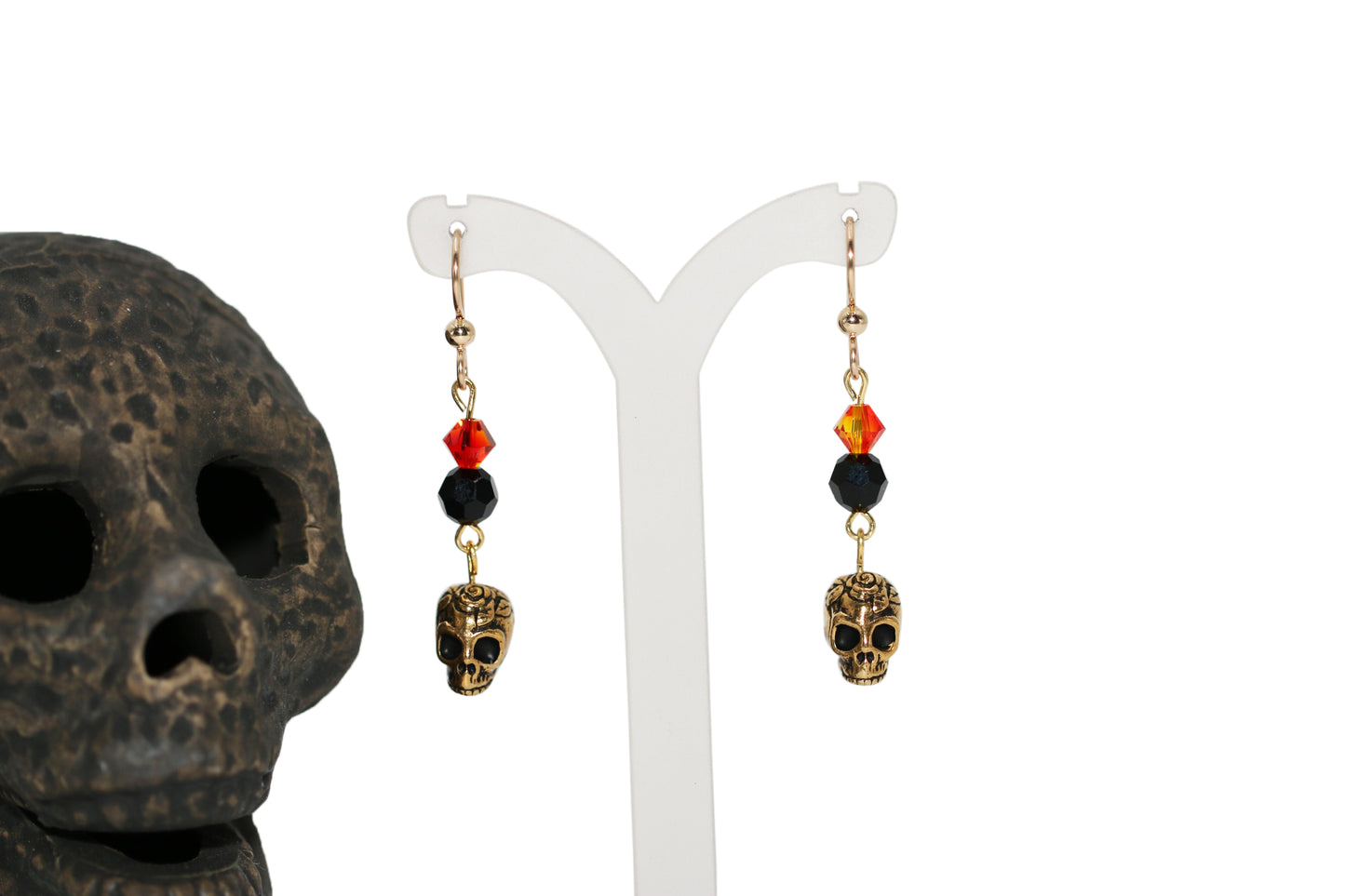 Get ready to elevate your Halloween costume with these stunning Gold Filled Skull Fishhook Earrings. Adorned with glittering Austrian Crystals, these earrings will make you stand out at any Halloween event. The perfect way to add a touch of spooky glamour to your look!