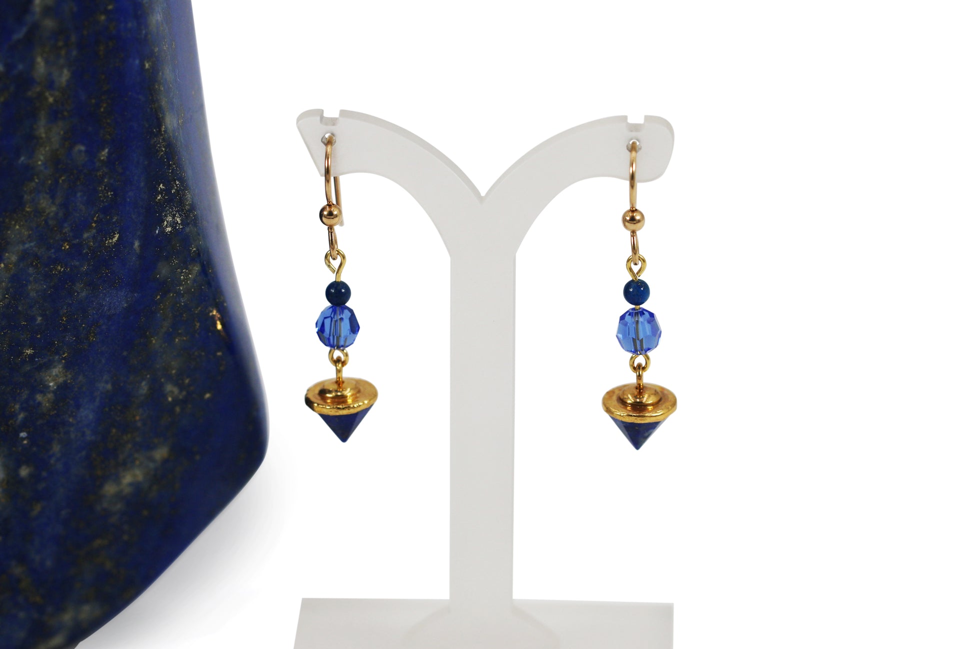 Lapis lazuli, or lapis for short, is a deep-blue metamorphic rock used as a semi-precious stone that has been prized since antiquity for its intense color. Originating from the Persian word for the gem, lāžward, lapis lazuli is a rock composed primarily of the minerals lazurite, pyrite and calcite.