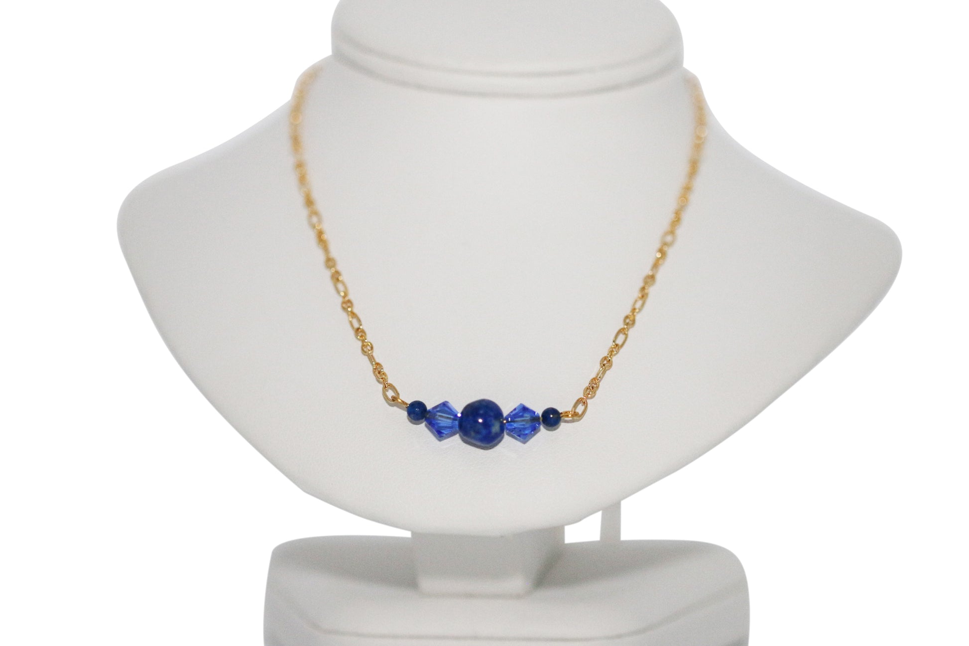 Enhance your look with our Lapis & Crystals Set featuring natural Lapis Natural Gemstones, Austrian Sapphire crystals, and Czech Crystals. The 22" Figaro chain necklace and Lapis Blue Gemstone Gold Filled Fishhook Earrings with Lapis Drops and Austrian Sapphire crystals are the perfect combination for a touch of elegance.