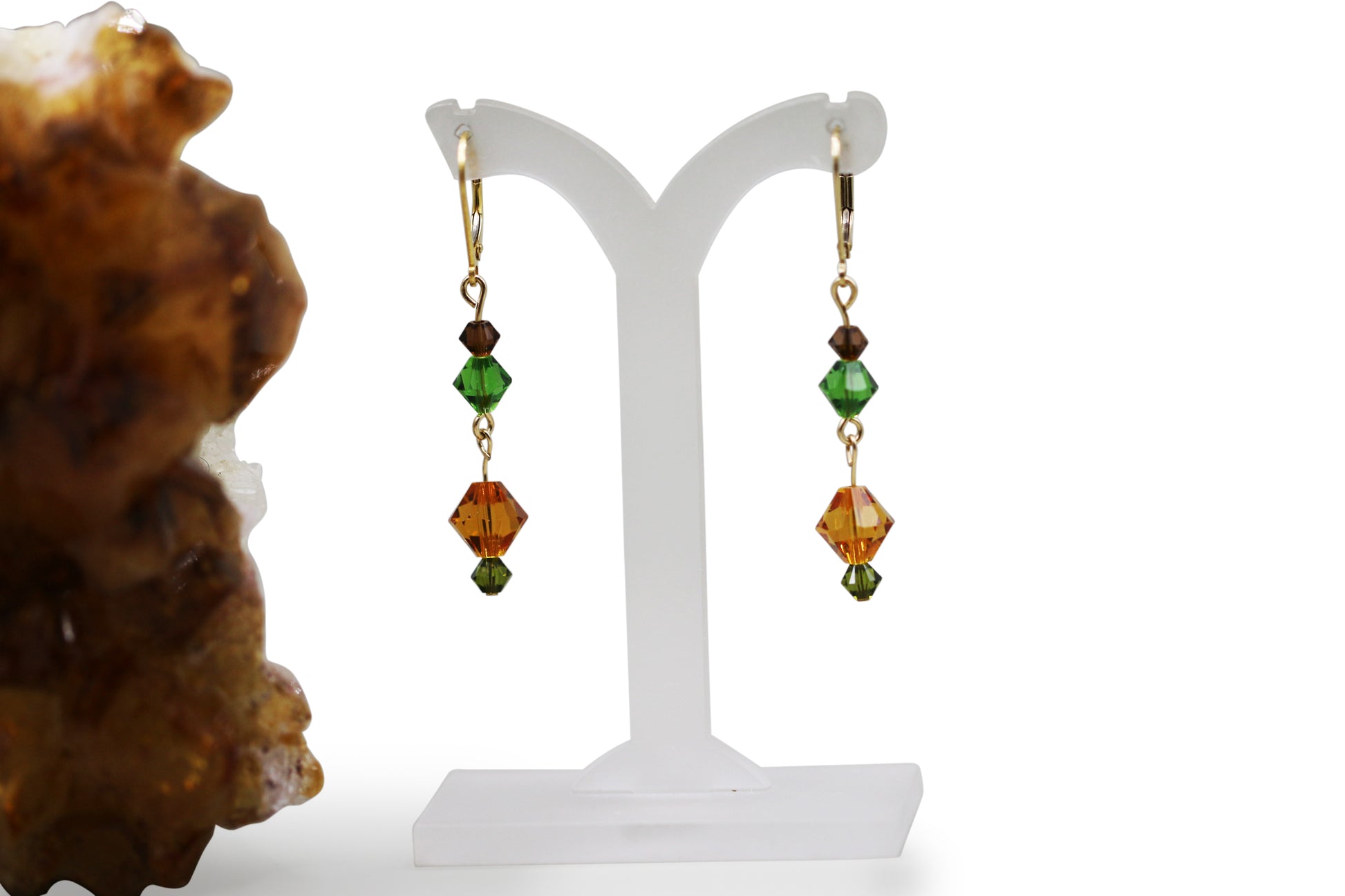 Elevate your everyday style with these stunning Forest Crystals Earrings, crafted to bring natural beauty and sophistication to any ensemble. Featuring rich forest green and warm brown Austrian crystals set in durable gold-filled leverback settings, these earrings offer both timeless elegance and reliable comfort for all-day wear. The leverback closure ensures a secure fit, so you can move through your day with confidence. Whether you're dressing up for a special occasion or adding polish to your casual wardrobe, these versatile earrings complement a wide range of outfits and skin tones. A thoughtfully designed piece that celebrates your unique style while delivering the quality craftsmanship you deserve.