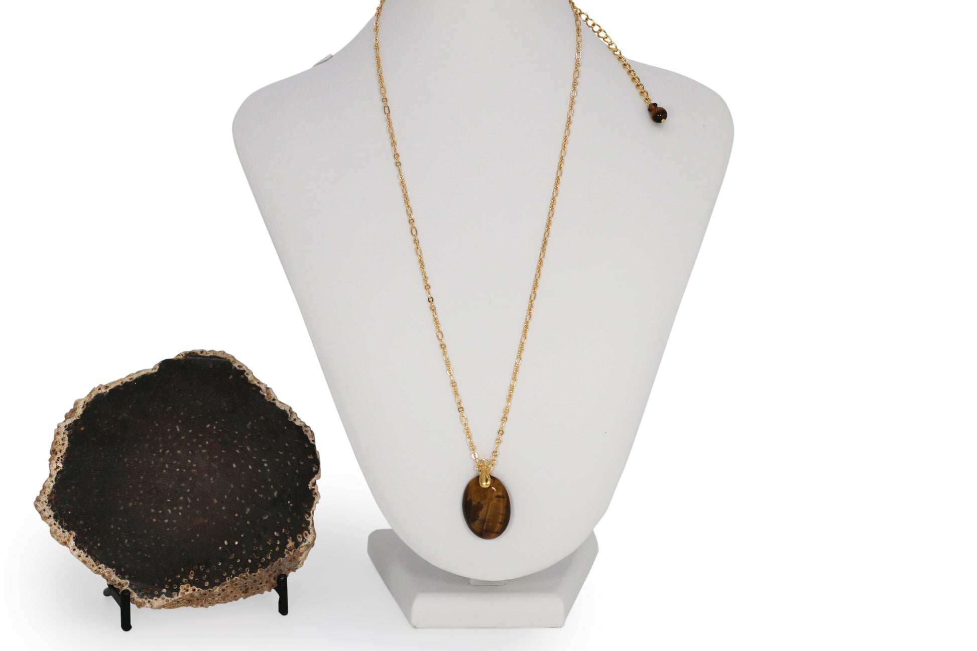 - Tiger Eye Natural Gemstone Pendant 20mm Oval 6mm Round
